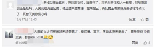 并且还有的玩家认为天美的设计师没有自己的创意,除了将人物的发型和脸型进行修改变成了网红脸和杀马特发型,还不如以前的模型好看。