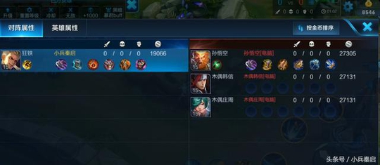 小兵测试狂铁出的是战士防御装备,而猴子出的是标准的暴击攻击装备,有破军和破甲弓。