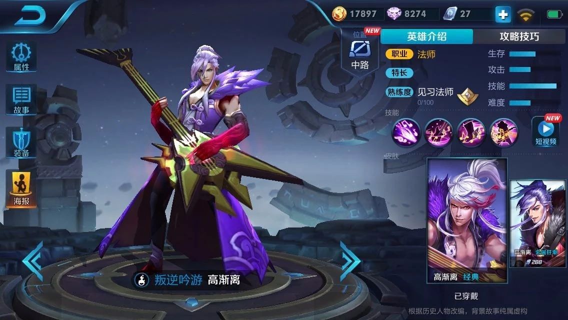 高渐离强化普攻的被动,法术加成极为恐怖。1技能为远攻消耗,2技能施法距离适中,大招则是近身AOE,不同的距离有不同的输出手段,且都伤害不俗。