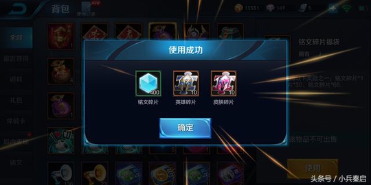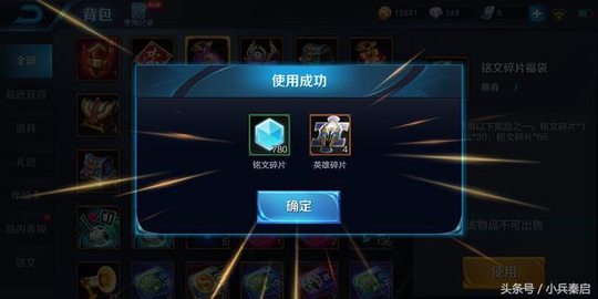 接下来开启“者”字,这个就得看运气,小兵第一次抽到的是780铭文碎片和4枚英雄碎片。剩余的消耗就拿来兑换其他的字,得到了皮肤碎片和铭文碎片。