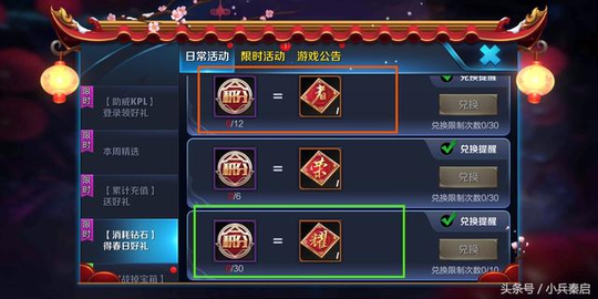 游戏规则很简单,“耀”字肯定是优先兑换的,因为它必得英雄碎片和皮肤碎片。接下来就容易了,按照贵的优先原则,小兵兑换的是“者”字。