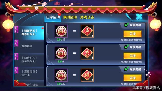 小编建议钻石数量不多的玩家可以先选择钻石夺宝,消耗3000钻石后再兑换必得皮肤/英雄碎片的春日“耀”字礼包,之后若想要王者水晶的玩家可继续抽取,而想要积攒铭文的玩家可选择抽取铭文宝箱!剩余积分兑换礼包可依据自身需求选择,比如小编先兑换“耀”字礼包后再兑换“荣”字礼包,不过30个礼包只开出了2个皮肤碎片...非酋一个!