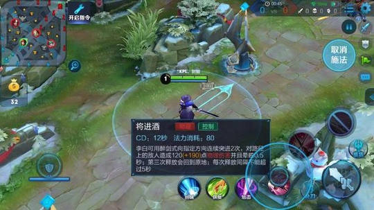 二技能作用诀窍:在面对敌人,可以视敌人的情况灵活使用二技能,看敌人的施法动作后,使 用二技能,可以达到躲避敌人的攻击伤害 ,玩得好的李白,经常会利用二技能躲避或骗出对方的技能,所以 不要轻易使用,如果确定使用后能够收掉对方的话,可以考虑使用二技能来收人头。