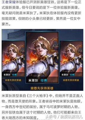 据说这个米莱狄,会是一个消耗类型的法师英雄,然后这个英雄的原型来自于三个火枪手。米莱狄的造型看上去确实有点像是一个女汉子,毕竟还有一个眼罩笼罩着,感觉有点惹不起。