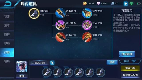 狩猎宽刃是最基础的打野刀,而露娜是一定要有这件装备的。为什么?露娜经典造型中,手上拿的武器就是这把打野刀,没有打野刀的露娜,作用至少得降低一半以上!