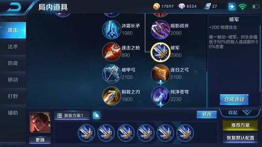 90%的吕布玩家第一件装备都会选择破军,破军的被动对血量低于50%的敌人,造成额外30%的伤害,因为吕布主要是靠真实伤害,而破军200攻击的直接面板加成,就算其他全部出肉装,其伤害收益也非常高。
