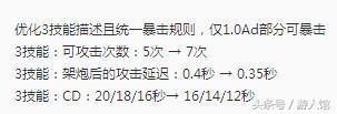 不过也有一个好消息,就是黄忠加强了,以前我给大家说过他在体验服大招重做之后只能攻击五次。而现在,官方把可攻击次数由五次变成了七次。并且cd也减少了,这样的话黄忠大部分时候还是可以蹲着输出了,大家都知道黄忠蹲着的输出还是要高一些,算是对他的一个大加强吧!