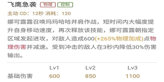 娜可露露虽然是个女性角色,但是她的瞬间爆发能力是非常强大的,赶紧把娜可露露练起来,带着一只猎鹰遨游王者峡谷吧!