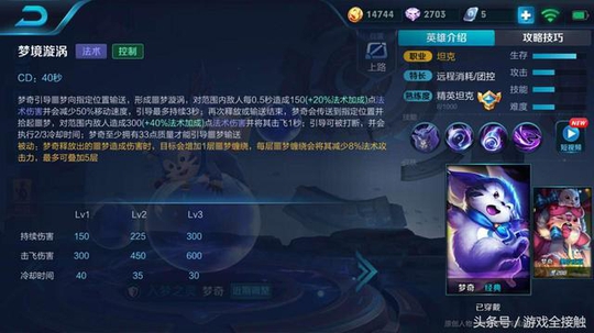 说实话,梦琪的所有技能不管是主动的还是被动的效果都非常实用,被动可以增加我们的物理攻击、双抗,让它前期非常肉而且还伤害特别高,抗压能力非常强;由于所有技能只需要能量,1技能可以让我们成为永动机的存在,可以频繁的跟对方不亏的换血,非常无脑;而2技能的消耗、清兵效果也非常不错,大招又能让自己位移并且可以控制敌人,功能性非常强大。