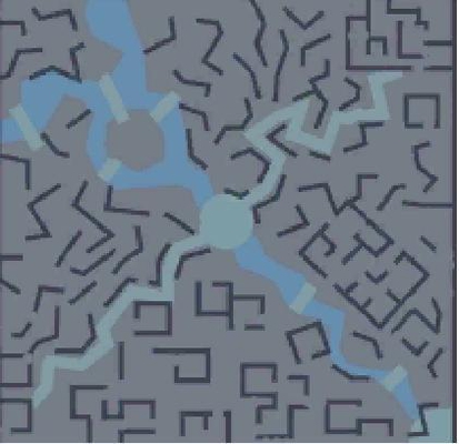 而就在最近,果酱在一个知名博主的微博里,得知了一个全新的模式,暂定叫做大逃杀模式。上图就是该模式的小地图,我们也可以从图中看到中间蓝色的一条应该是河道,而左上角的那一块果酱觉得怎么有种火焰山的感觉。