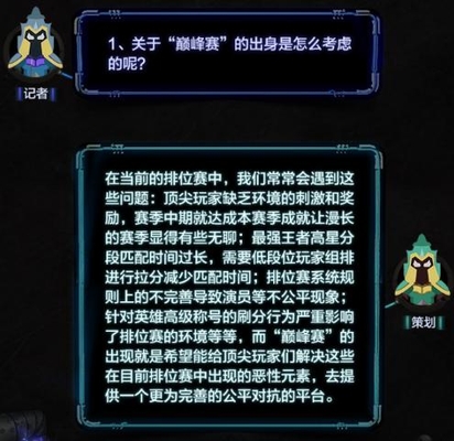 王者荣耀官方策划Donny刚刚公布了关于“巅峰赛”的细节。