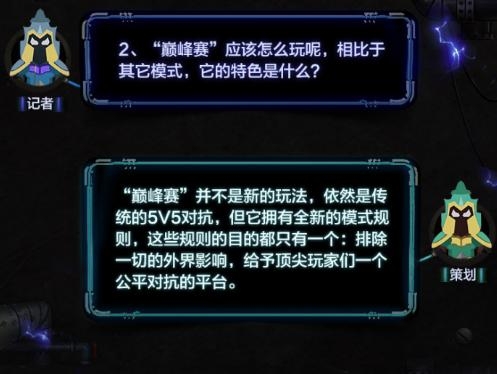 巅峰赛的关键字是“公平对抗”,玩法上跟传统的5V5一模一样。