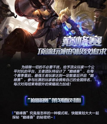 只有强者才配参加?王者荣耀将出为王者段位打造的“巅峰赛”
