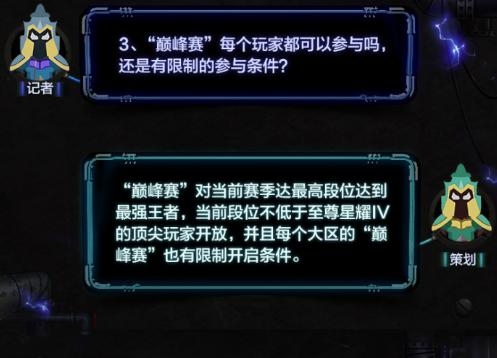 只有当前赛季曾经上过最强王者,并且目前段位不低于星IV的顶尖玩家才能参与巅峰赛。
