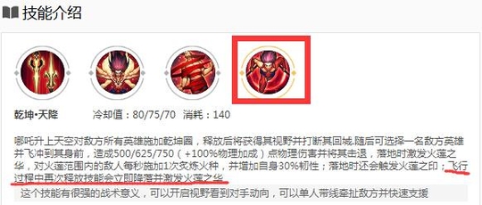 当然,哪吒最精髓的技能则是他的大招了。曾经哪吒的大招是一个十分坑爹的技能,因为无法打断经常被带进敌方泉水,现在的大招则是一个十分精髓的技能,能够在单带时随时支援团战,还可以遏制对面脆皮的发育,只要一落单开大就冲过去了。