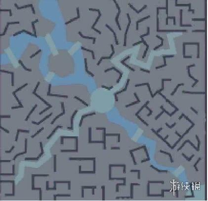 大逃杀模式的简化地图如下: 整个地形错综复杂,中间一条可能是河流。