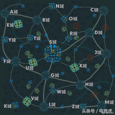 这个模式中的众多城池也都被取了各种各样的名字(暂以字母代替)。以S城为核心,其他的城市相互连接,看起来非常庞大。