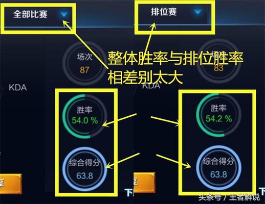 胜率平衡机制。王者荣耀中的胜率平衡机制是很特殊的一种机制,因为胜率分为全部比赛和单项比赛。而对于单排的玩家来说一定要把握好全部比赛的胜率与排位赛的胜率差。排位赛匹配机制中,胜率基本上是综合排位赛与全部比赛的胜率平均值来做参考的,所以如果你的排位赛胜率比较高,那么最高去把自己的全部比赛胜率拉低一些。这其中娱乐模式和匹配赛就成了很好的选择。让自己的平均胜率低一些,这样匹配到的队友就会好一些了。