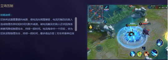那么作为战士,位移和控制当然不能少,狂铁的二技能具有位移并且还有减速效果,这个及技能抓人非常的强势,减速50%已经是非常高的效果了.