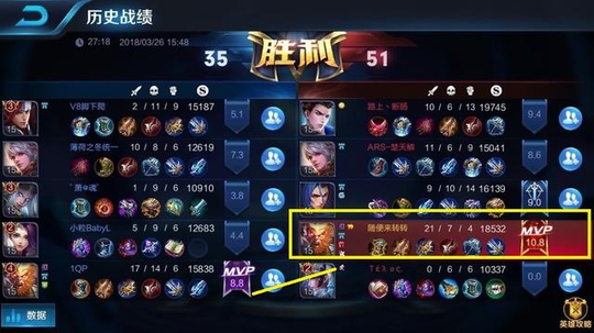 在这局战绩35-51的战绩中,露娜送人头还挂机,结果猴子实力带飞!四打五反而碾压对面,最后估计这位露娜都笑了吧,没想到这样还能躺赢。