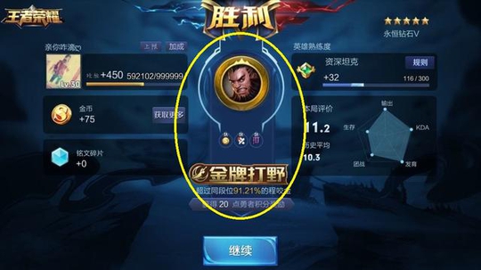 最后一个坦克英雄的程咬金,硬生生变成了刺客英雄,最后还获得了金牌打野的称号。想到金牌刺客大家想到的是李白,阿轲等等~可是这位刺客却变得不一样。一个坦克打出金牌打野,估计网友看了都得服这位程咬金玩家。