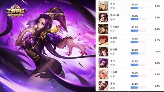 其二就是最近这段时期有没有被改动和重做,从上上图可以看出,符合这两个条件的英雄已经不多了,孙尚香马上也会有团战精神皮肤,新人物与SNK也可以不说,马可据非官方消息说也是即将要调整,所以剩下的也就是芈月了!