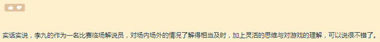 当然,第一周的比赛的梗也是层出不穷,小编就不提什么“AG以为卖了个中单,其实是卖了个边路”这些大家都看过的梗了。今天小编我要提一嘴在上周KPL比赛中一段李九的解说。