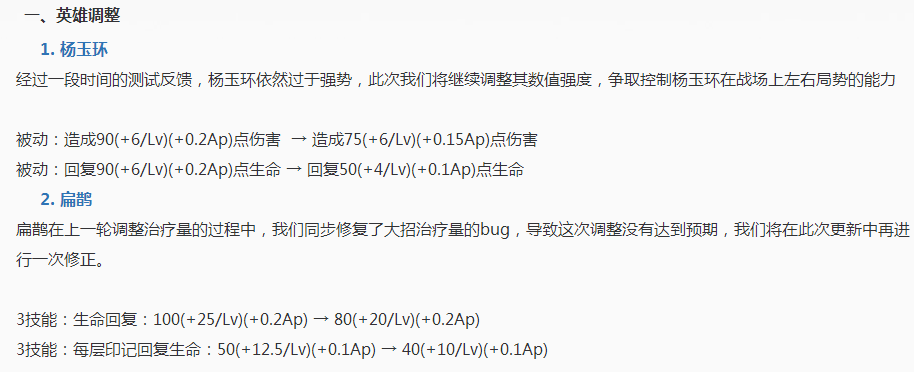 从比赛来看,如果不改的话,十个大汉中路互殴早晚要成为现实。而坦克体系下的奶妈荣耀也瞬间达到了史上最高峰。针对小伙伴们的吐槽,策划团队再不做改变是不可能的了。所以,今天下午,杨玉环和扁鹊双双被削!
