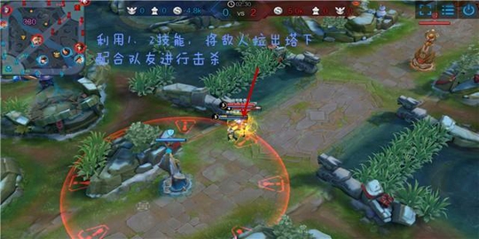 后期如果敌方畏缩塔下防守,己方无法攻上高地,鬼谷子可使用三技能伪装自己和队友,利用二技能拉出敌方英雄,进行击杀。团战之前鬼谷子可利用三技能伪装队友,打出“埋伏”;当局势不顺时,也可使用三技能给队友提供加速和伪装,避免被集火。