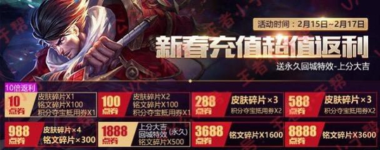 然后过了两天除夕到,各种的限定皮肤开始疯狂的上线,正好玩家都要开始充值,所以来一波充值福利也是相当的不错,起码充了那么多点券,小的福利给一点儿也还不错~