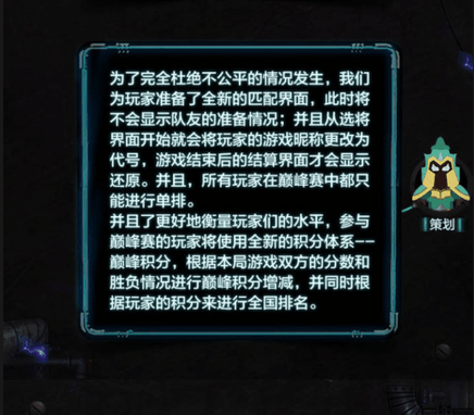 3、积分制,根据双方实力决定对战结束后的巅峰分加减多少