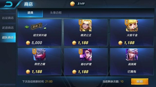 战队商店8888战队币能够换高渐离,后期的高渐离差不多可以一打五,很多人早就已经迫不及待花金币买了它,玩游戏稍微活跃点就能领到,何必花这钱。