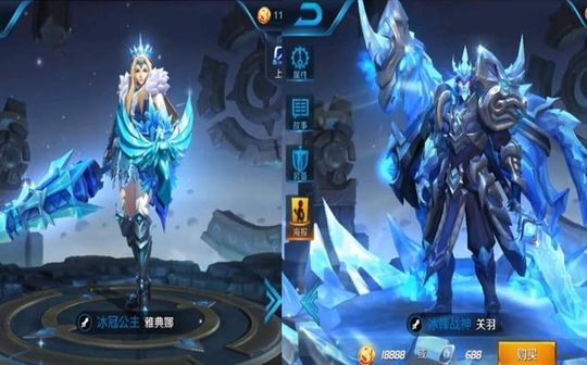 雅典娜的冰冠公主和关羽的冰封战神两个冰系皮肤颜色也是十分搭配,要是关羽的马能带上雅典娜的话那会是什么样的画面呢。