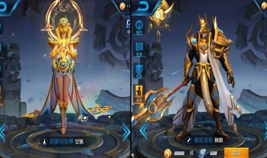 杨戬和女娲虽然都是神话人物,也不会有人把他们联系到一起,但他们出的288皮肤却都是和埃及有关而且皮肤颜色确实很搭。