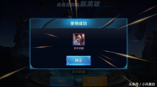 而小兵用朋友的小号同时购买三个开启,由于他的账号没有这三名英雄,运气很好,成功开出了宫本武藏。