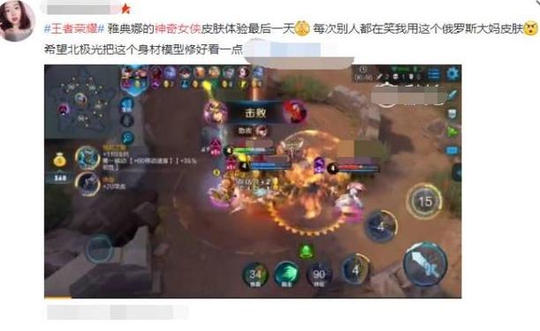 我们可以看一些网友对这款皮肤的评论,说这造型像俄罗斯大妈。