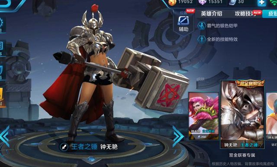 钟无艳的王者之锤是赏金赛10连胜就可以免费获得的一款限定皮肤,人人都可以获得,但造型确实不令人满意,戴个头盔不说他是钟无艳还真以为是个壮汉呢。