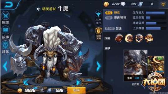 从刘备的外表来看,肯定会有大多人以为这个英雄应该是作为射手定位的英雄,其实不然,刘备这位英雄的定位是战士,在游戏当中大多数都是打野的位置,因他单兵作战能力比较强,技能还提供了护盾效果,所以是现版本中高胜率英雄之一。第三名:牛魔
