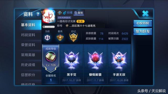 王者荣耀:玩家106级成就全服排名第一,网友却认为这是刷的!