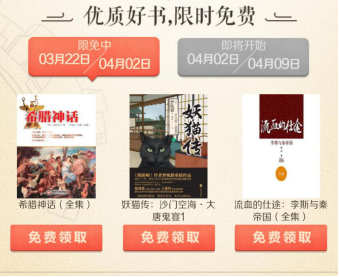 从2018年3月22日-4月8日,《王者荣耀》联合微信读书为大家准备了限免书籍!每7天为一个限免时段,每个限免时段的召唤师都可以免费获赠3本限免书籍,大家只要在活动页面分享指定书籍,就可以领取限免资格,并且在微信阅读App内享受免费阅读的福利啦!