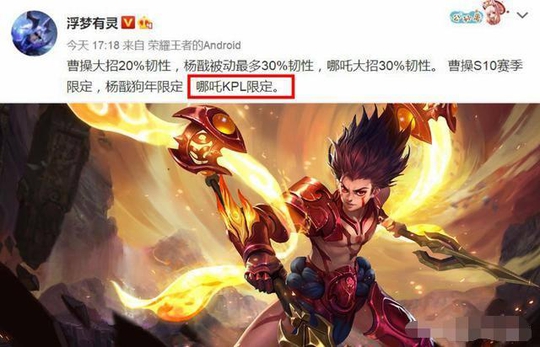 那么按照大家的猜测你们觉得今年上半年的赛季限定皮肤会锁定那个英雄呢?据小道消息透露本次赛季的限定有可能锁定哪吒,作为胜率榜前五的存在,哪吒获得此次赛季皮肤,其实一点都不意外,毕竟在上一届的比赛中哪吒有着不俗的表现,同时也有曝光称是露娜!(具体以官方为准)