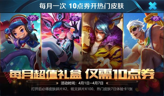 王者荣耀:充值活动今日结束,四月初上线新皮肤,1元礼盒再上架