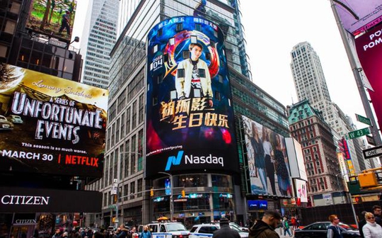 孤影的粉丝甚至包下了美国纽约最繁华的商业中心——时代广场上的纳斯达克主屏,用来为孤影庆生!纳斯达克是众多上市公司敲钟的地方,是世界的股票中心,能登上纳斯达克是众多企业家一辈子的梦想!