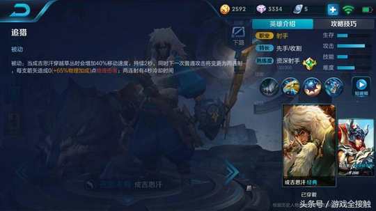 不过网上也有一种普遍的说法就是“没有没用的英雄,只有没用的玩家”,后来慢慢的感觉到并不是成吉思汗没用,而是不太适合我。而我发现的原因就是看到一位玩的非常好的玩家用他玩打野位,结果杀爆全场。后来我就研究了一下,发现他极其吃装备,非常的占用资源,但是由于他在草丛中会有特出效果,所以他装备起来了的伤害确实有点变态,所以广大的小伙伴要注意哦~