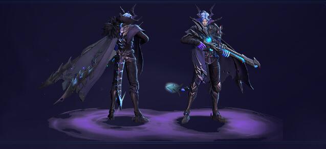 再看一下这个皮肤的正反面,可以看到这个皮肤已经把百里守约的色调完全改变了,是一种紫黑色的色调,还有一条长长的尾巴。这个从某种程度上来说,还会使他显得更加隐蔽。