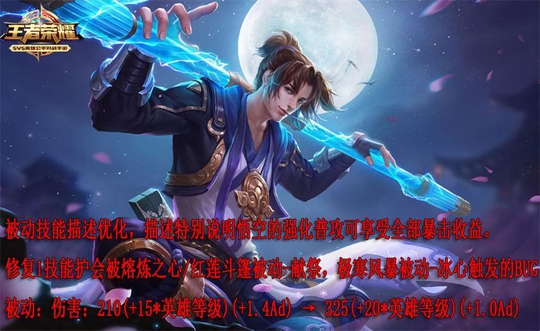 孙悟空伤害全面削弱,移除了防御装备的被动效果能触发护盾的机制,电刀、末世、强击等攻击装备是否能触发得等更新后测试。被动伤害满级时提高了190的基础伤害,但是削弱了0.4ad加成,也就是说孙悟空的攻击力低于475的话,满级伤害会更高,而一般孙悟空攻击力能达到800-1000,后期单次暴击伤害起码降低五百以上,具体等更新后测试。