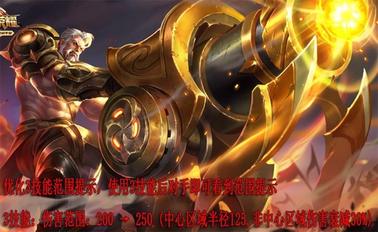 黄忠的调整比较迷,提高了位置暴露,扩大大招强化普攻伤害范围,但是边缘地区的伤害只有70%,攻击黄忠时,贴脸走位的话可以减少比较多的伤害。