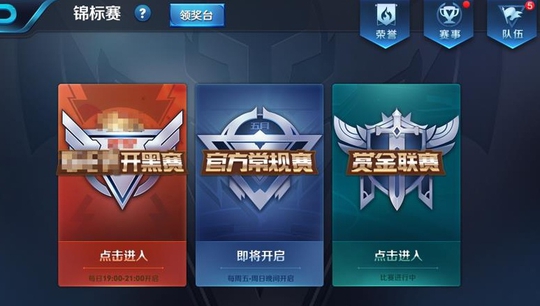 官方锦标赛登场,进入要求是有五名队友的小队就能报名,完成比赛可以获得奖励,冠军最多获得五个宝箱,可以开出各种游戏道具,金币钻石类,另外还有赛事积分,可以额外兑换一些奖励道具。另外在官方的暴料图中还有一个开黑赛的新模式,不过被打了码,应该是今年的五五开黑节的活动。