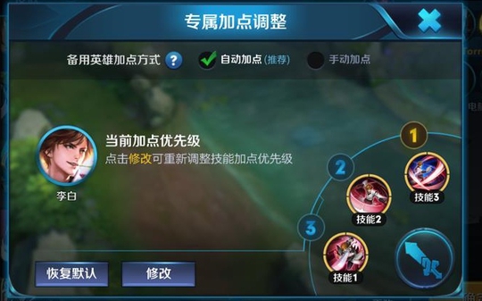 契约之战新增自动加点功能,可以再选英雄时进行选择几个技能的优先加点顺序,例如主加大招,副二级能,最后点一技能,当英雄处于备用状态升级时,就会自动升级完成,不用进行切换后加点。另外游戏战绩内有切换英雄按钮,可以切换全局游戏战绩页面,查看所有玩家的英雄和出装。