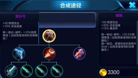 新装备穿云弓和破晓替代了破甲弓,远程英雄收益相等原本的破甲弓,近战英雄减半,穿云弓在前中期购买也是能有不错的收益,攻速的穿透效果适合射手,特别是孙尚香可以考虑中期先购买穿云弓。不过这件装备的加成过高,感觉之后应该会进行削弱,售价也太贵了一些。